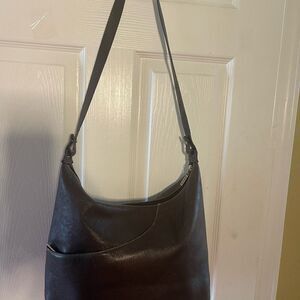 Maxx New York Leather Brown medium shoulder bag with silver tone hardwares.. Front zipper pocket back pocket top zipper the inside lining has a side zipper a side pocket and three other pockets. Pre owned in good used condition the bottom four corners has some wears see all pictures any questions please message. M7
