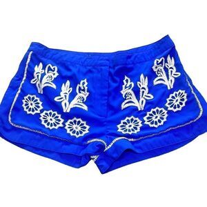 May & July Women’s Blue Embroidered Floral Shorts Size Large