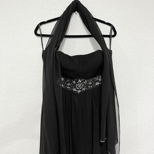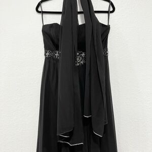 May Queen Couture USA Formal Strapless Dress 10 Scarf Bedazzled Waist Black Wedding