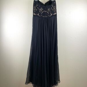 May Queen Dress Womens 12 Black Strapless Lace Chiffon A-Line Evening Gown Prom