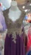 Stunning purple dress with gold embellishments. Perfect for prom or special events. Elegant and eye-catching design.