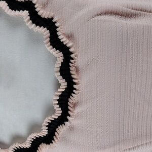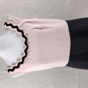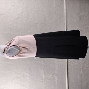 Maya Brooke Women's Pink/Black Scoop Ruffled Neckline Sleeveless Zipper V-Back Knee Length A-Line Sheath Dress. 96% Polyester, 4% Spandex. Tag States 2piece. Only Dress. Measurements approx. Flat Lay. Pit to Pit: 18, Pit Opening: 7.5, Waist: 17, Length: 40". Size 8 Color May Vary Due To Lighting.