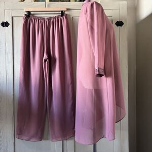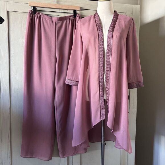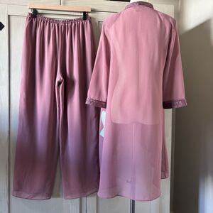 Maya Brooke Chiffon Sheer Pant Duster Set Women 8 Mauve Wedding Party Evening
