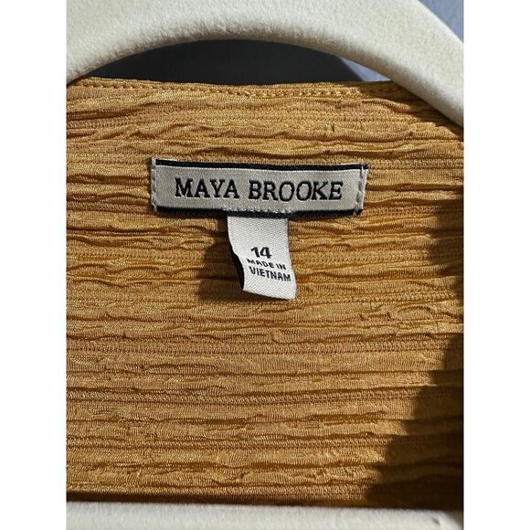 Maya Brooke Mustard Textured Open Front Blazer Jacket Size 14 Polyester/Spandex
