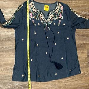 Maya Inka natural fiber embroidered blouse with tassels sz L by measurement no tag. New no flaws