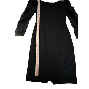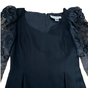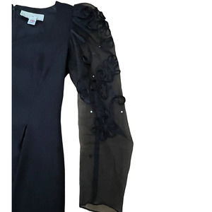 Maya Jornot For Michael Marcella Black Dress Embroider Design 3/4 Sheer Sleeve with Diamond Embelishment Size 8 V Neck Zippered back Lined Vintage