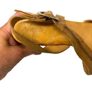 Maya | Tan Leather Mid Wedge Heel Ankle Strap Sandals Shoes Size 9