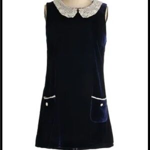 This stunning Maya Velvet Dress is a perfect blend of elegance and versatility. Featuring a luxurious velvet fabric, this mini dress is ideal for both daytime and evening wear. The navy color is rich and timeless, while the contrasting white lace collar and pocket detailing add a touch of charm and sophistication.