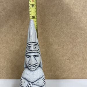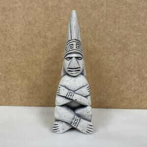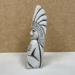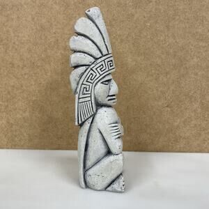 Mayan Aztec Toltec Mexican Warrior Sandstone Figure 8.75" Headdress Arms Crossed