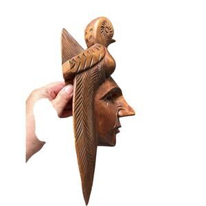 Mayan Bird Mask Hand Carved 18 Inches Long 10 Across 5 Tall Dark Wood
