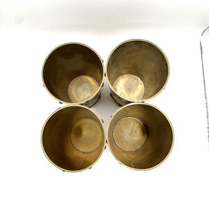 Set of 4 tankard mugs with no handles. Hard to find. Copper and brass with beautiful patina and metalwork detail.