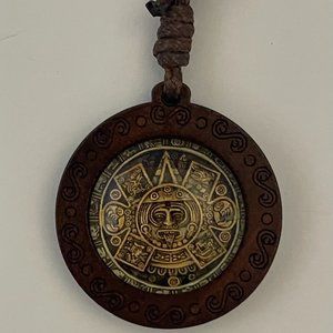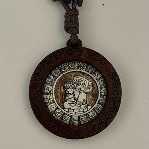Mayan Necklace Aztec Necklace Mexican Jewelry Maya Calendar Pendant Art - TWO Ne