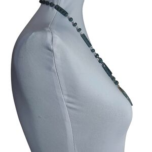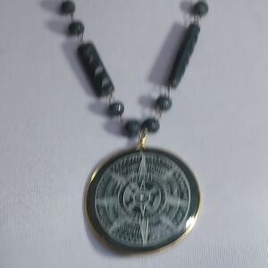 Mayan Sundial Green Dyed Jasper Medallion on chain of Sculpted bars and round beads