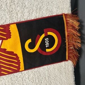 Bold red and yellow scarf by Mayatki. Ideal for showing team spirit.