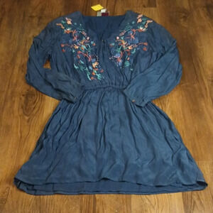 Maybe Blue and White Large Print Gingham 1/2 Sleeve Dress SSS