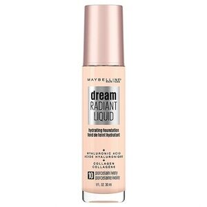 Maybelline Dream Radiant Liquid Hydrating Foundation 1oz in the color 10 Porcelain Ivory. With hyaluronic acid and collagen. Brand new, authentic. Discontinued and very rare. Four available for purchase.