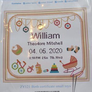 Unused condition in original packaging. May have wear to packaging from storage. See photos for additional details. Maydear Birth Certificate Small Toys Cross Stitch Kit Pre-Printed Fabric.