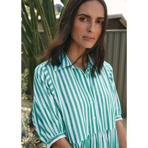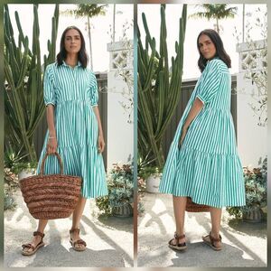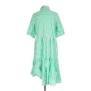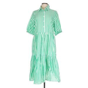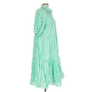 Maye Marnie Billowy Tiered Striped Midi Cottagecore Cotton Shirt Dress Sz. L