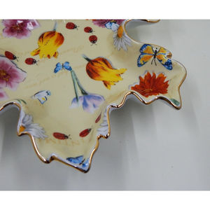 Mayfair Collection By Jay Ceramic Maple Leaf Shaped Floral Dish Nappy Candy Bowl