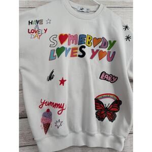 Item: Mayfair Group Somebody Loves You AOP Crewneck Sweatshirt One Size Petite White