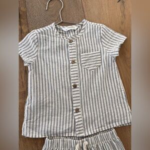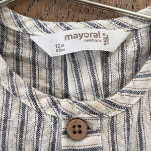 Mayoral 3 piece baby boy linen short set bucket hat striped neutral 12 months