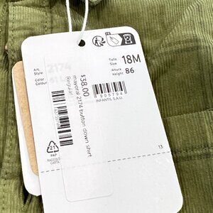 Mayoral Baby & Toddler Button-Down Corduroy Green Shirt NWT Soft Fabric 18 Month