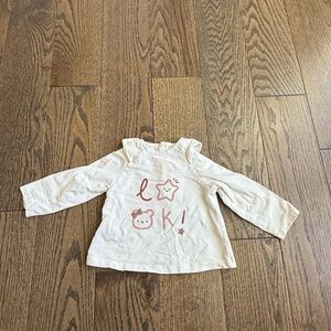 Mayoral Cream Long Sleeve Tee with Pink Print 6-9 months baby European designer