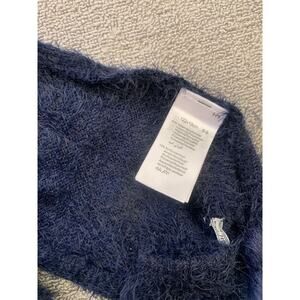 Plush navy fuzzy 3-piece winter set from Mayoral—featuring a beanie with faux-fur pom-pom, matching loop scarf, and cozy gloves.