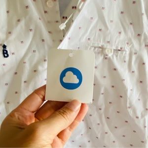 White button down with red and blue detail. NWT. Size 3 years. Made in Spain. Measures shoulder to hem 16”, armpit to armpit 12”.