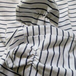 Cozy little footie from Mayoral's Newborn line. Features dark navy stripes below the empire seam waist and dark navy piping along the tops of the feet and the edge of the shirt collar. A little applique embroidered puppy in a sailor outfit completes the nautical theme! Two snap closures, one that runs from rear collar to low back (for easing dressing) and one along the entire inseam (for easy diaper changes). Elasticized heels keep the footie in place on Baby's feet. Cotton/elastane fabric is buttery soft with good stretch.