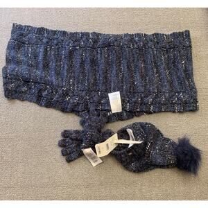 Mayoral Women Size M Navy Blue Metallic 3 in 1 Set Hat Scarf Gloves NWT