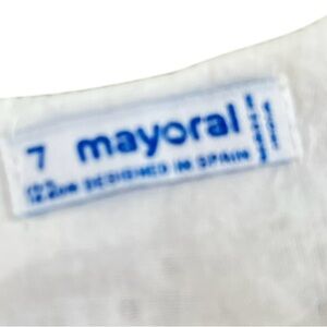 Mayoral white Eyelet lace blouse crochet trim, tassel & fringe lined Spain sz 7