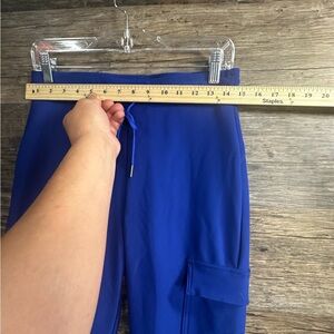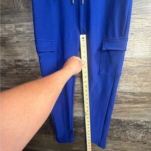 Elevate your style with these royal blue jogger pants. Featuring practical cargo pockets and a comfortable drawstring waist, they are ideal for any casual outing.