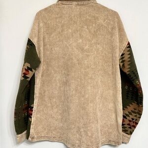 Mazik Army style Womens Corduroy Jacket Button down Aztec Print Sz L