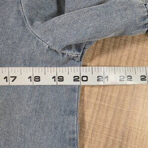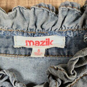 Mazik Denim Snap Front Top Women Size Small Gray Ruffle Casual Preppy Feminine