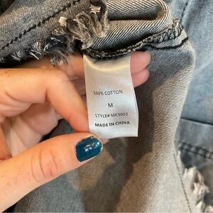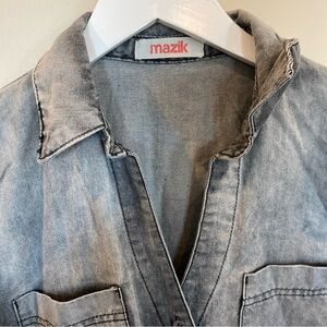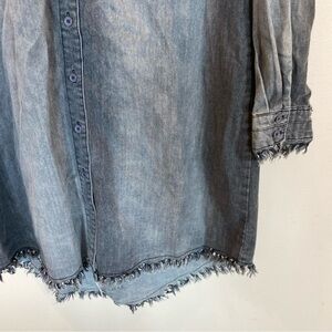 Mazik Gray Denim Dress Long Sleeve Womens Medium Frayed Hem Pockets