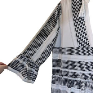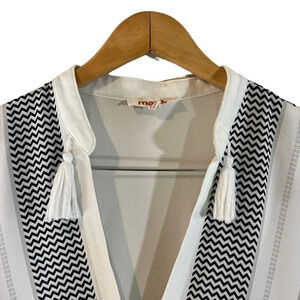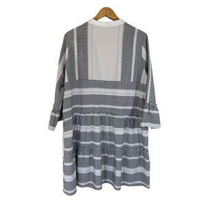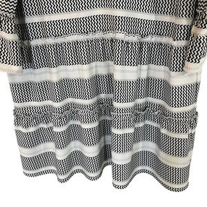 Mazik Ruffle Dress Large Tassels Knee Length Black White Gray Chevron Striped