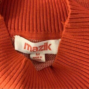 Mazik Rust Orange Striped Sleeve Mock Neck Knit Sweater Tunic Longline Medium