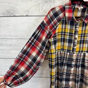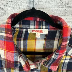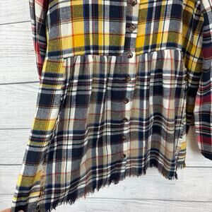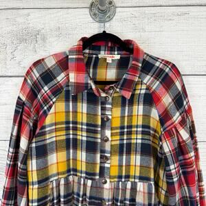 Mazik Women's Plaid Colorful Button Front Babydoll Flannel Top Size Small