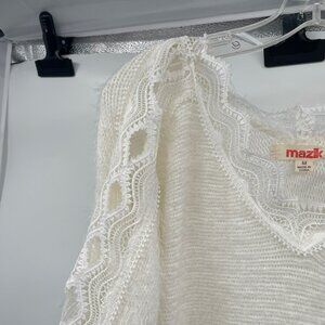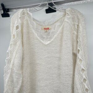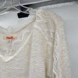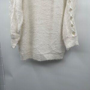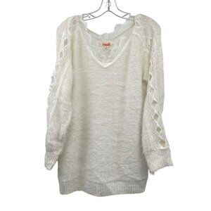 Mazik Womens V-Neck Sweater Lace Trim Long Sleeve Ivory Size Medium Fuzzy