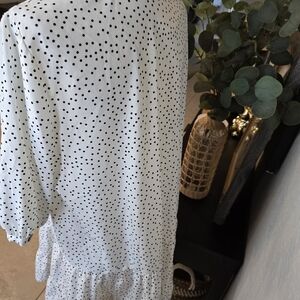 Mazik Women’s White And Black Polka Dot 3/4 Sleeves Mini Dress Sundress Size M