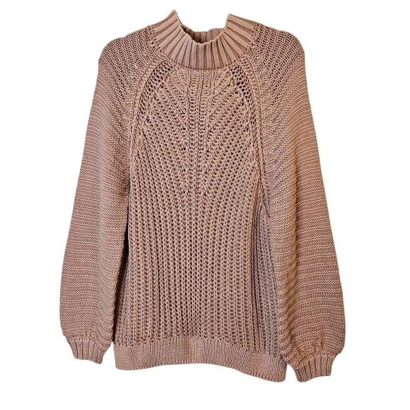 Mazik cotton sweater, mock turtleneck,blush. M. #906