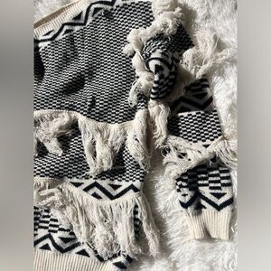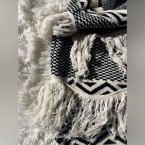 Mazik sweater - cream/black stripe print one shoulder with fringe