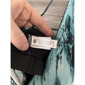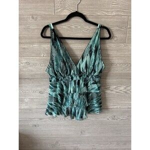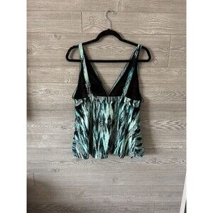 Mazu, Blue Green Striped Swim Top with Tiered Overlay on Front Size, size 12