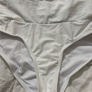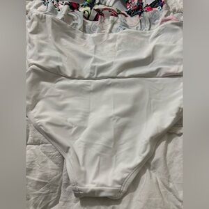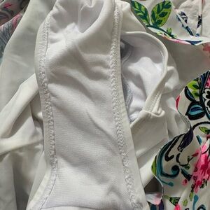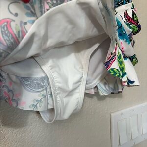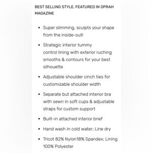 Interior bra and brief. Adjustable bra strap and shoulder width.