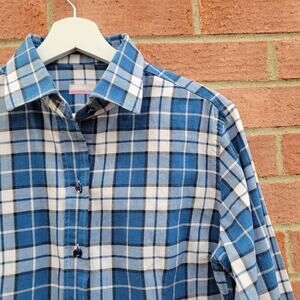 Mazzarelli Women's Plaid Slim Fit Shirt Blue 46 Large