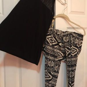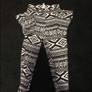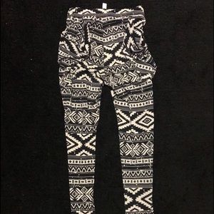 Size small leggings has big pockets more like an Mc hammer pants has cute design has nice stretch to them can fit a smaller side medium brand 2cute. Cream white color with black. Worn once gained to much weight. Obo $