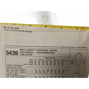 McCALL'S 3439 Vintage Sewing Pattern Men's Shirt Wardrobe Dress and Sport Sz 40