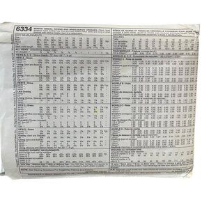 This McCALL'S sewing pattern 6334 offers a beautiful selection of fitted bridal gowns and bridesmaids' dresses with a dropped waist bodice featuring front princess seams, back darts, and options for long or short sleeves with sleeve heads. The pattern includes multiple views: A bridal gown with detachable train, a bridesmaids' dress with puffed sleeves, and floral overskirts. Sized for Misses sizes 8, 10, and 12 (Size B), it provides versatile options for elegant wedding attire.