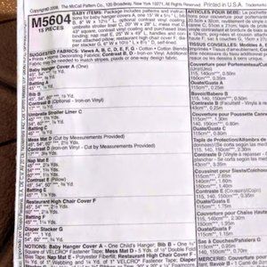 McCall's #M5604**High Chair & Stroller Seat Covers For Baby.